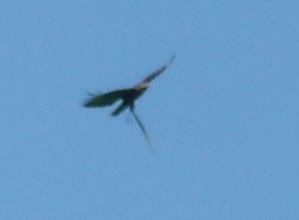 24.06.2011 16:10Dneska jedeme na rodinný výlet na Hrubou Vodu. Možná než výlet je to spíše pracovní záležitost k nachystání jednoho tábora, ale to nevadí. Nejsem moc nadšena, protože jsem měla v plánu vyrazit na nějakou ornitologicky zajímavou lokalitu, ale když ve vesnici nacházím zvláštní pero, už mě to začíná i bavit. A pak - nastává zlom výpravy! Z lesa vyletuje káně a krouží nad lesem. Na tom by sic nebylo nic zvláštního, ale to co jí trčí z nohou, vypadá jako hadice. Pravděpodobně je to však užovka, kterou někde sebrala. Za pár minut káně mizí za kopci a my pokračujeme dál. Kdo ví, třeba provádí vyhlídkové lety. U naší bývalé chaty mě překvapí další, poměrně světlý dravec. To káně není určitě, ale vypadá to na orlovce! Tak jsem zase chytřejší a zkušení to určili jako včelojeda. Překrásný. A o kousek níž z lesa vyletuje takový velký rorýs a za chvilku ho následuje druhý. Párek ostřížů, i když jejich hlas mě trochu znejistil. Krouží mi nad hlavou a ani mi nevadí, že mám nohy rozdrápané od trní, jak pobíhám po pasece. Loučím se s těmito krásnými dravci a vracím se zpět dolů do vesnice. U Bystřice řešíme, jestli by tu mohl být skorec, a najednou ,,ci“ a z proudu vzlétá kos s bílým bříškem. Ještě když lokalitu opouštíme už definitivně, můžeme ještě vidět černého čápa, jak v korytě řeky hledá něco na zub. To bylo tedy dneska od této lokality opravdu překvapení.